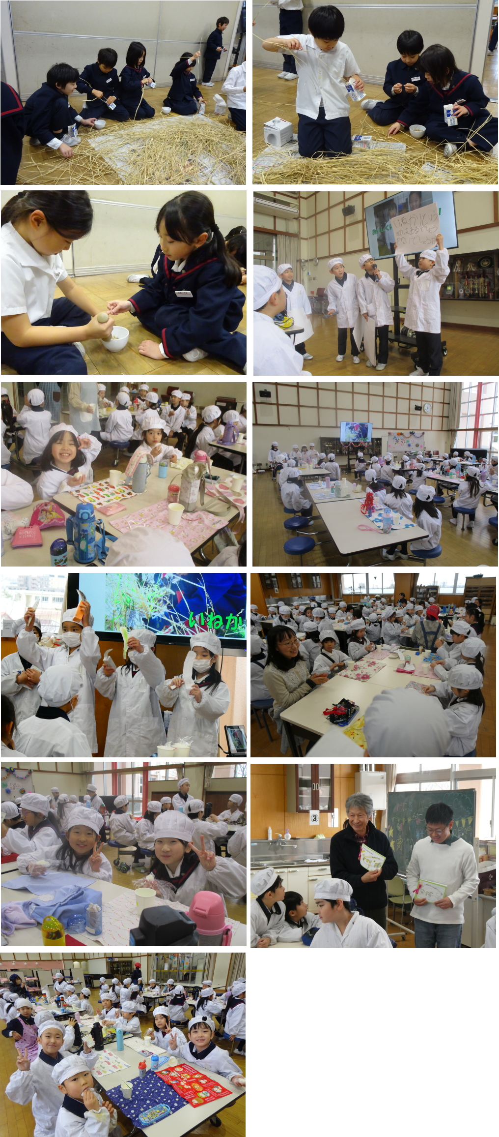 生活科で収穫した稲から玄米を取り出すために脱穀、もみすりをしました。牛乳パックで押さえながら脱穀したり、すり鉢やすりこぎを使ってもみがらと米粒に分けたりしました。なかなか力の必要な作業で、真剣な表情で活動しておりました。もみがらの中に米粒が入っているものが少なく、「こんなにがんばったのに…」と悔しそうでした。